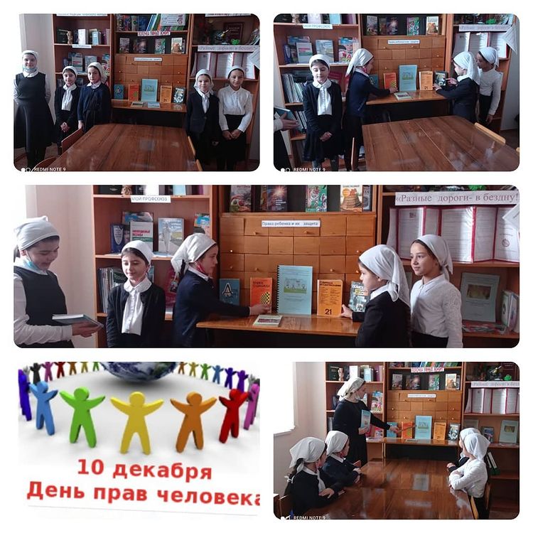 Библиотекарь школы Мусаева М. Ш. провела обзор книжной выставки "Права ребенка и их защита".