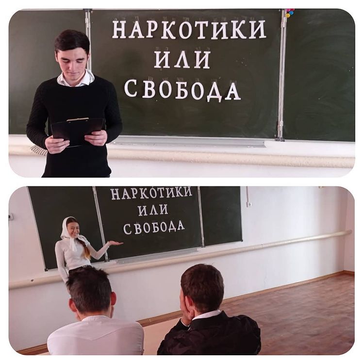 13.03.2021Зам. директором по ВР Абдулкадыровой З.Ш. и организатором школы Оздамировой А.С. проведено мероприятие среди учащихся 10-11 классов на тему "Наркотики или свобода".Цели: познакомить учащихся с понятиями «наркотик», «наркомания» и их влиянием на здоровье человека; сформировать негативное отношения к наркотикам и наркотическим средствам.