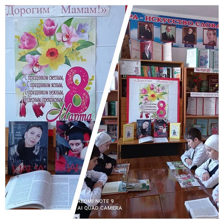Библиотекарь школы Мусаева М.Ш. провела час отдыха и обзор книжной выставки "Дорогим мамам".