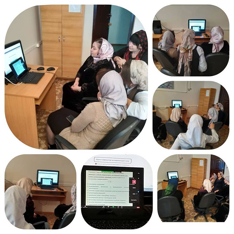 Зам. директора по ВР Абдулкадырова З.Ш. с классными руководителями и председателем родительского комитета приняла участие в вебинаре по теме "Сопровождение внедрения программы воспитания".