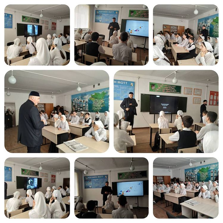 Председатель уполномоченного по правам человека по ЧР Дениев А. А. среди обучающихся 9-11 классов провел беседу на тему "Права человека" , и в конце своей беседы он показал фильм "Права человека".