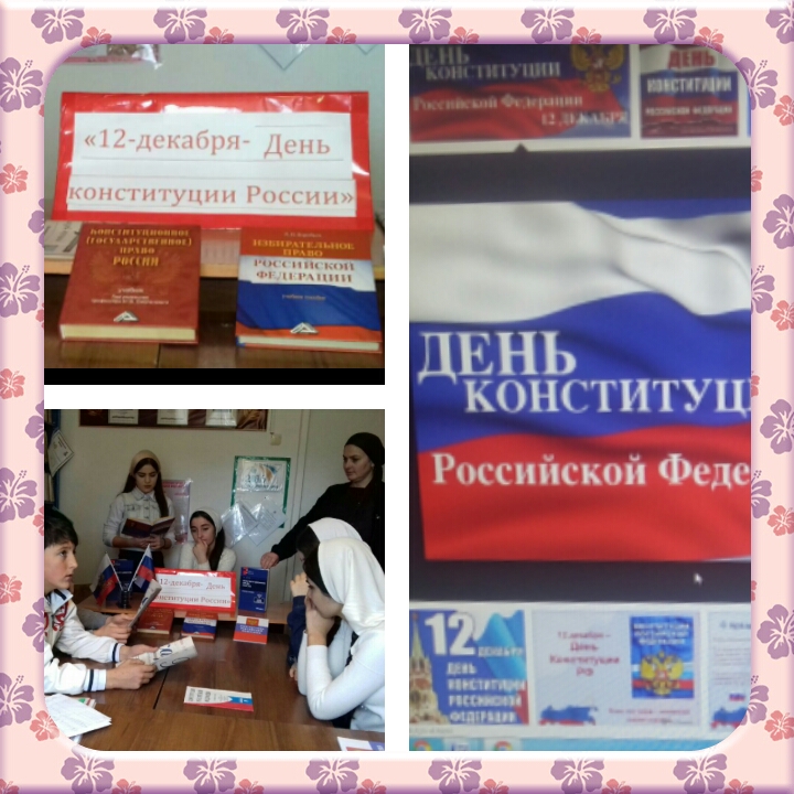 Библиотекарь Мусаева Малика Шамадовна провела книжную выставку "12 декабря День Коституции РФ".