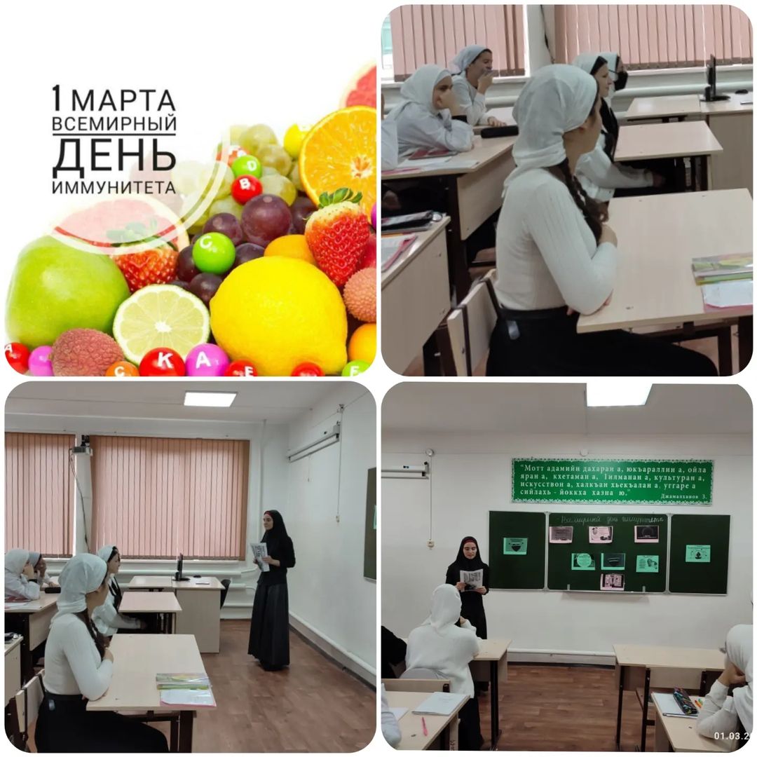 01.03.2022Социальный педагог Ахметханова М.А. среди обучающихся 8а класса провела беседу "1 марта Всемирный день иммунитета". Марет Александровна отметила, что иммунная система избавляет организм от чуждых ему элементов, таких как бактерии, вирусы, грибки, некоторые ядовитые вещества. Иммунитет передается человеку по наследству, однако его всегда можно укрепить и приумножить за счет правильного питания и здорового образа жизни. О пониженной иммунной активности можно судить по частым простудам, герпесу на губах, длительному повышению температуры,перманентной усталости, чрезмерной сонливости или, напротив, бессоннице, непрекращающейся мышечной и суставной боли, появлению сыпи на теле.
