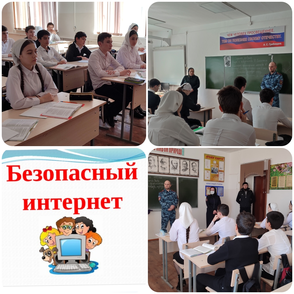 15.03.2022Зам. директора по ВР Абдулкадырова З.Ш. организовала встречу с инспекторами ПДН . Лейтенант полиции Сельмурзаева Хава Асламбековна и младший лейтенант полиции Идрисов Магомед Султанович провели беседу "Безопасный интернет"среди учащихся 9-х классов, направленную на развитие обучения школьников безопасному поведению в сети Интернет с использованием современных игровых и интерактивных технологий, формированию устойчивых жизненных навыков при работе в сети Интернет.