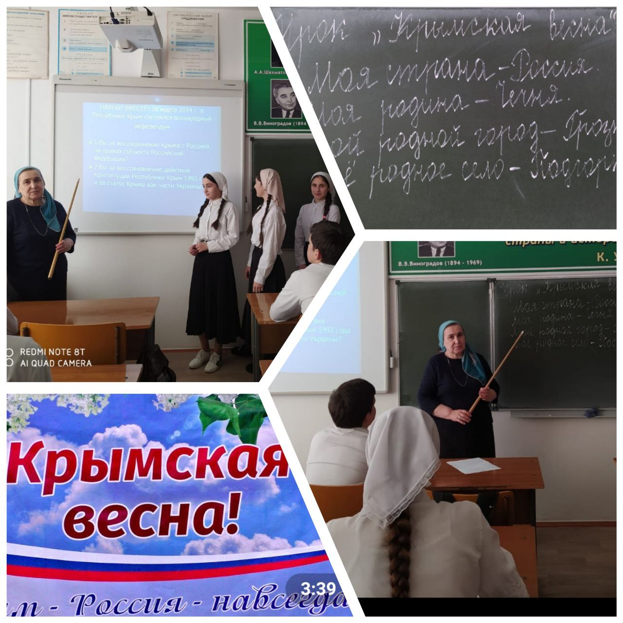 Классный руководитель 7а класса Ульбиева З.Н. провела урок с показом презентации "Крымская весна".