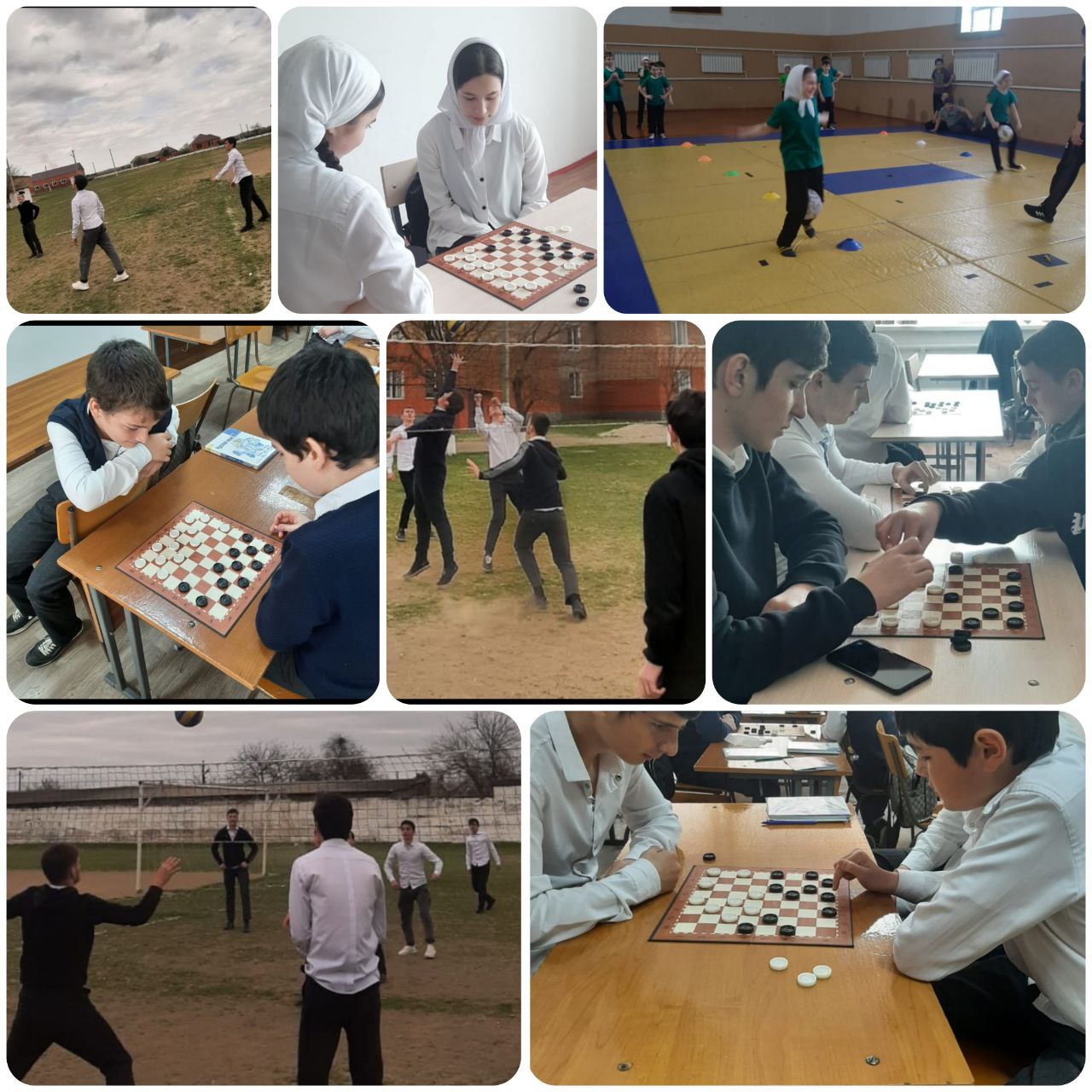 14.04.202214-15.04.2022г. учителя физической культуры Юкаев Ю.Ю. и Басханов А.У. провели спортивные мероприятия: волейбол, веселые старты, шашки "Мы за Мир!", приуроченные Дню мира в ЧР