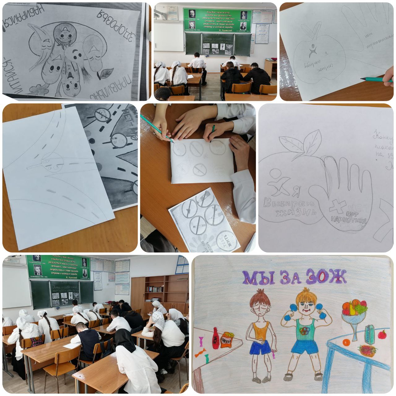 19.04.2022В соответствии с планом профилактических мероприятий по результатам СПТ, в целях формирования навыков здорового образа жизни обучающихся 19.04.2022г. учитель ИЗО Солтаханов И.М. провел конкурс рисунков на тему "Мы за здоровый образ жизни" среди учащихся 7 класса. К данному конкурсу дети отнеслись творчески. В красочной форме обучающиеся рассказали о вреде, наносимом организму человека при злоупотреблении алкоголем, табаком, наркотиками.
