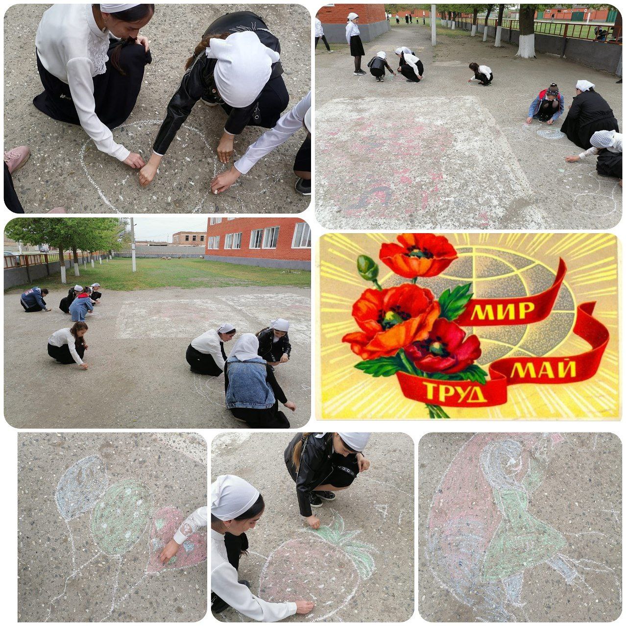Под руководством Организатора школы Оздамировой А.С. учитель ИЗО Солтаханов И.М. провел конкурс рисунков на асфальте "Мир! Труд! Май!" , Среди учащихся 3-х классов