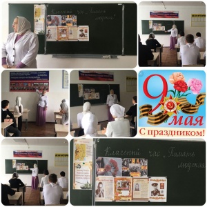 07.05.2022Классный руководитель 10 класса Юсупова Р.Х. провела классный час "Память людская", приуроченный Ко Дню Победы. В ходе беседы обучающиеся получили информацию о начале ВОВ, о ходе этой войны и окончательной победы Красной армии над фашистской Германией.