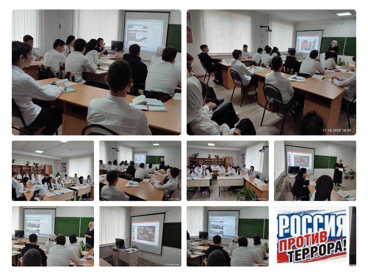 17.10.202217 октября заместителем директора по ВР Абдулкадыровой З.Ш. в 9,11-х классах проведено патриотическое мероприятие "Терроризм не пройдёт". Данное мероприятие проводилось с целью формирования у обучающихся толерантности, сострадания, общероссийской гражданской идентичности, воспитанию патриотизма, уважения к Отечеству. На протяжении всего мероприятия наблюдался положительный настрой. Обучающиеся эмоционально погрузились в тему мероприятия, воспринимали все серьёзно и осознанно. Мероприятие расширило знания обучающихся о героизме, способствовало развитию нравственных качеств личности обучающихся.