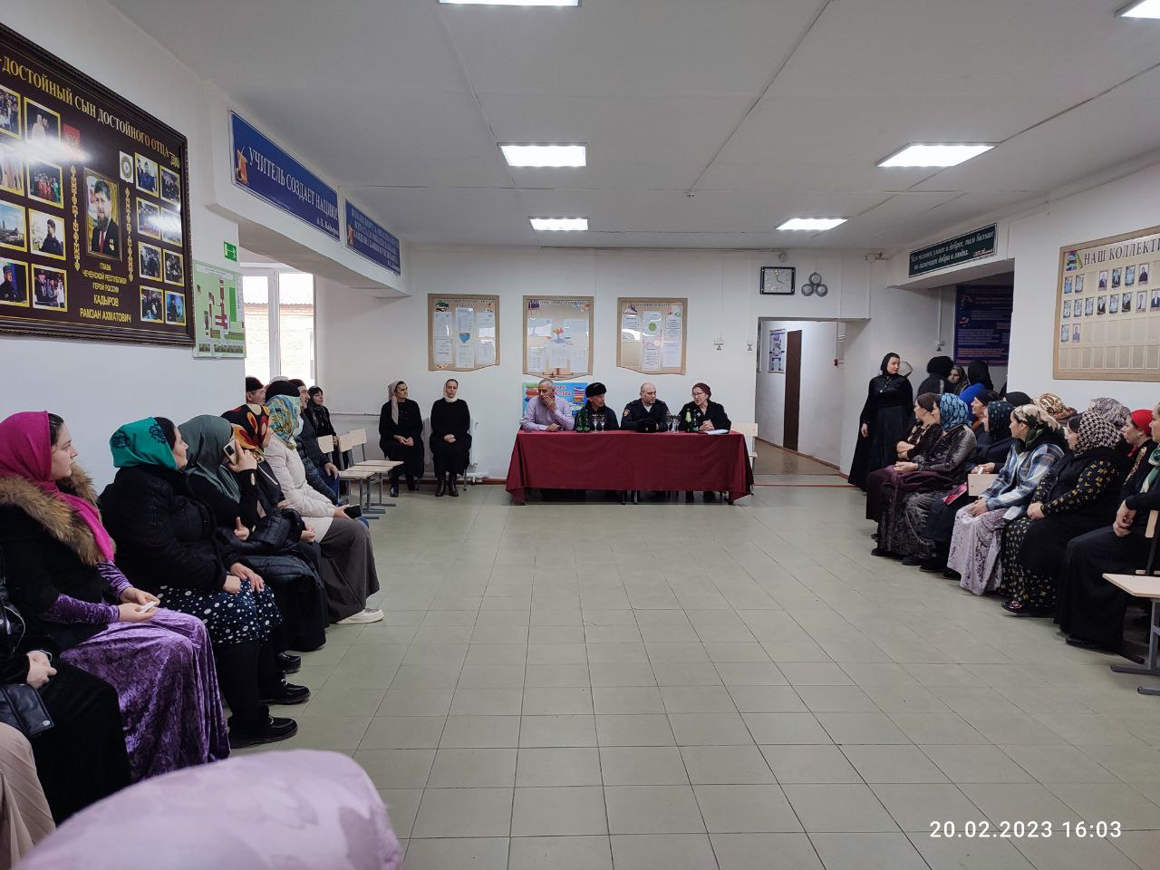 21.02.202320.02.2023г. в 16.00. проведено общешкольное собрание на тему "Профилактика правонарушений и безнадзорности среди несовершеннолетних" На собрание были приглашены инспектор ПДН Идрисов М.С., Глава Администрации Тербулатов Э.Ш., Имам села Юкаев М.А., представитель совета старейшин Басханов С. В ходе собрания были затронуты вопросы об успеваемости, посещаемости, опаздываниях учащихся, о запрете ношения телефонов на территории школы.