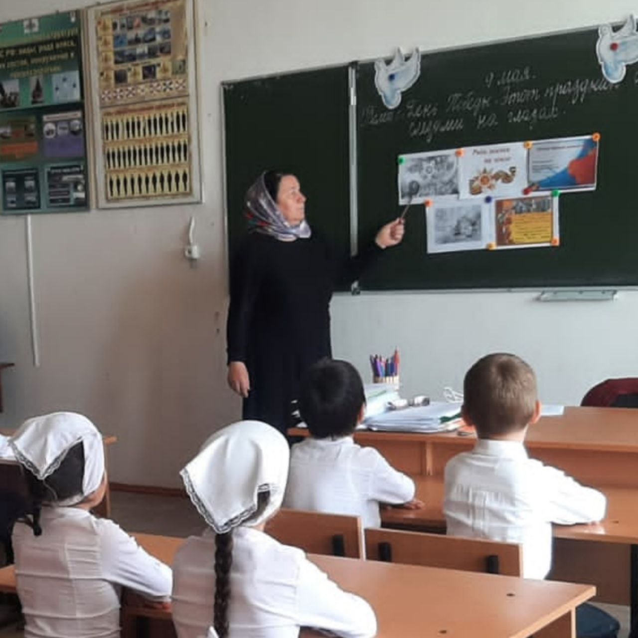Классным руководителем 1б класса Накостова Х.М. проведен классный час на тему "День победы-этот праздник слезами на глазах"
