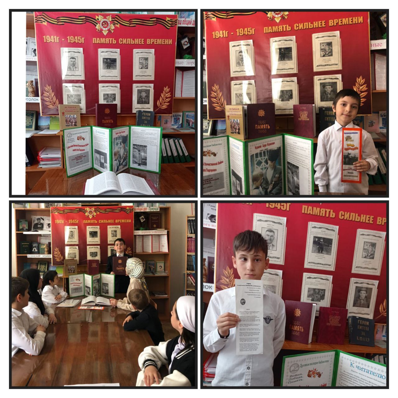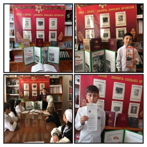 04.05.2023г. библиотекарь Мусаева М.Ш. организовала книжную выставку и провела час памяти ко Дню победы.