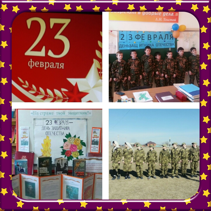 Во 2 а классе проведен классный час с уроком мужества. «Нет более почётней миссии, чем Родину защищать» - под таким девизом прошёл Урок мужества. Были исполнены песни, стихи посвященные этому празднику.. Мальчикам – будущим защитникам России были преподнесены подарки в честь праздника. Среди учащихся 5-6 классов был проведен «Рыцарский турнир». Мальчики состязались в ловкости, силе, в очень интересной форме прошёл турнир .
