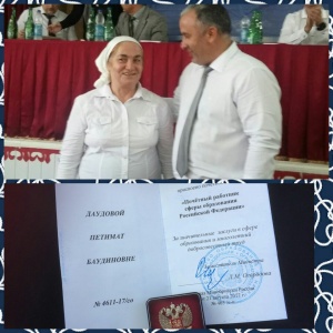 Искренне поздравляем коллегу, учителя русского языка и литературы Даудову Петимат Баудиновну с присвоением заслуженного званиния "Поченый работник общего образования РФ". Желаем крепкого здоровья и плодотворной работы на благо подрастающего поколения и республики в целом.