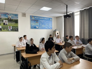 30.01.2024Классным руководителем 6 а класса Ящуркаевой Зулихан Нажимудовной была проведена беседа "Спустя годы" с учащимися. На беседы обсуждались важные вовпросы, касающиеся ситуации, что творится в мире, а также то, как мы можем помочь ее участникам одной верой. Именно она является лучшей поддержкой.
