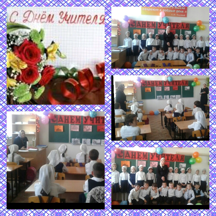 5 октября Зам. дир. по ВР: Абдулкадырова З.Ш. провела праздничный концерт посвященный Дню учителя. В нём приняли участие ученики 11, 6 класса и учителя. Присутствовали и зрители: обучающиеся 8-10 классов. Зал украшен оформленными к этому событию праздничными плакатами.