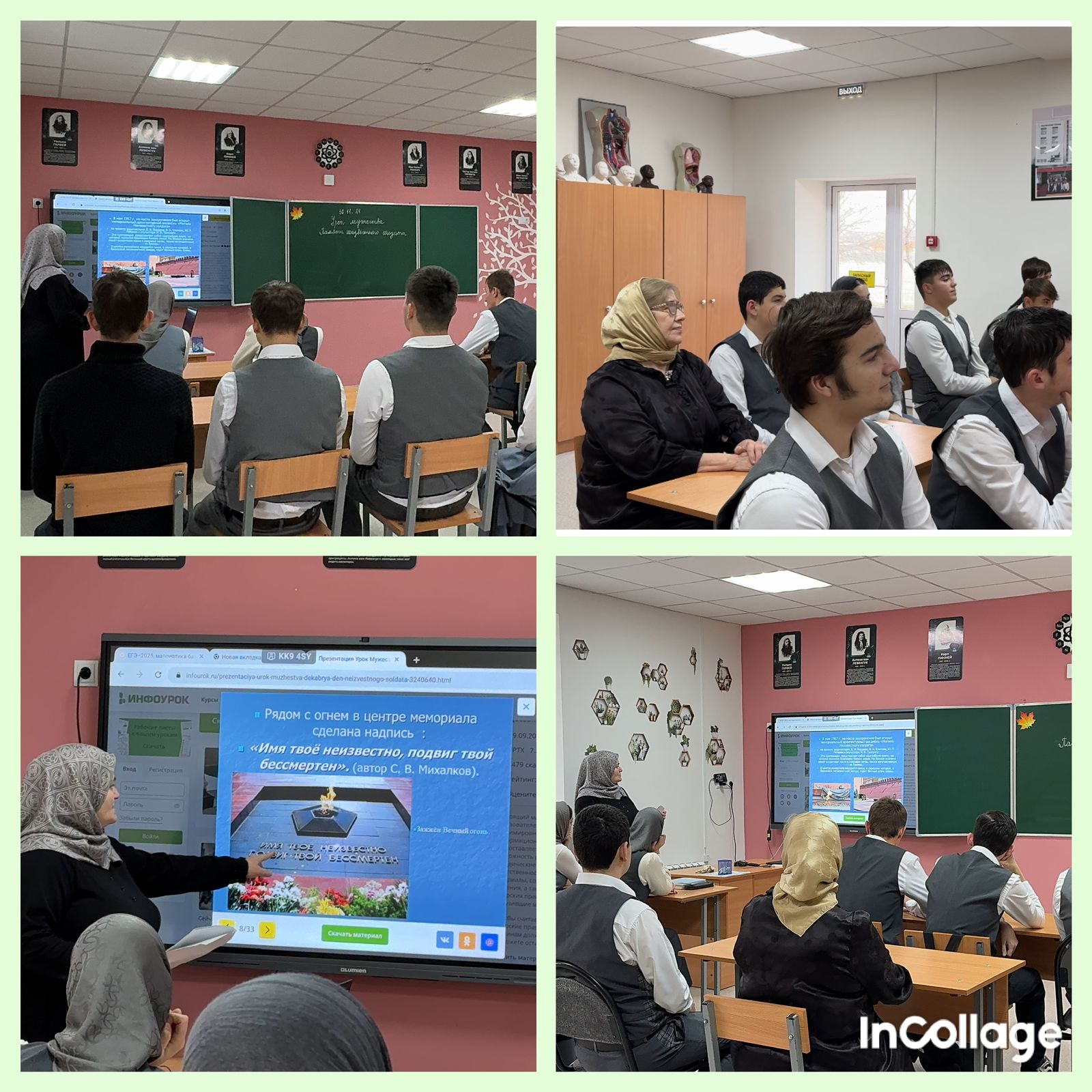 02.12.202402.12. 2024г. в МБОУ «СОШ с.п. Подгорное» на классных часах «Уроки мужества» учащиеся говорили о подвиге советских солдат, о их беззаветной верности Родине, защищая ее от врагов, о солдатах, не вернувшихся с войны, о поисковых отрядах, братских могилах, памятниках Неизвестному солдату.