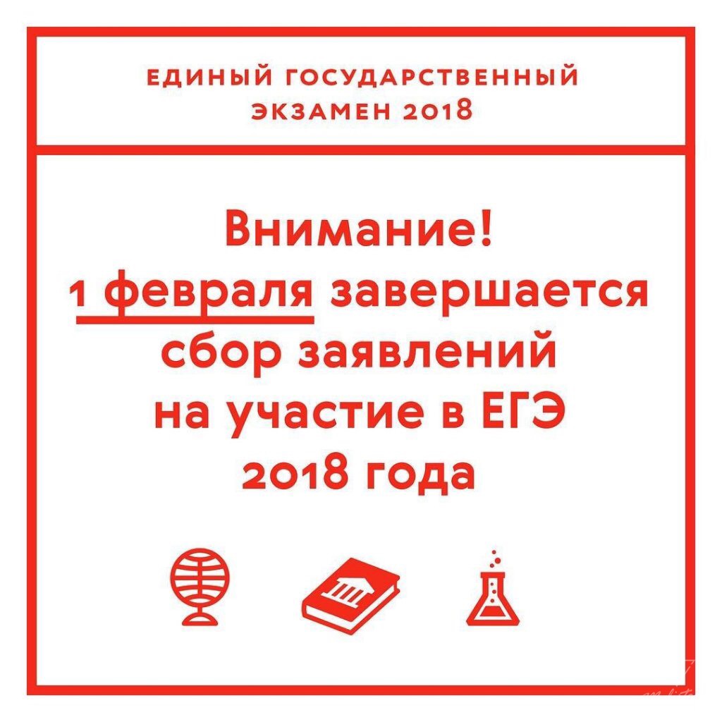 01.02.2018Федеральная служба по надзору в сфере образования и науки напоминает, что 1 февраля завершается сбор заявлений на участие в ЕГЭ 2018 года. Выпускники школ текущего года подают заявление на сдачу ЕГЭ по месту учебы. Выпускники прошлых лет должны подать заявление в места регистрации на сдачу ЕГЭ, определяемые органами управления образованием субъекта Российской Федерации. После 1 февраля заявления на участие в ЕГЭ принимается только по решению государственной экзаменационной комиссии субъекта Российской Федерации при наличии у заявителя уважительных причин (болезни или иных обстоятельств, подтвержденных документально) и не позднее, чем за две недели до начала экзаменов. В 2018 году досрочный период ЕГЭ пройдет с 21 марта по 11 апреля, основной – с 28 мая по 2 июля. Выпускники прошлых лет имеют право сдать ЕГЭ в досрочный период или в резервные дни основного периода. Срок сдачи ЕГЭ выбирается такими участниками самостоятельно. Участие выпускников прошлых лет в основной период проведения ЕГЭ (с 28 мая по 20 июня 2018 года) допускается только при наличии у них уважительных причин, подтвержденных документально, и соответствующего решения государственной экзаменационной комиссии.