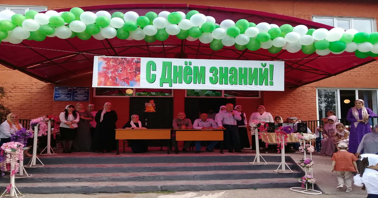 Под аплодисменты присутствующих через «живой» коридор прошли наши одиннадцатиклассники и первоклассники. Ведущие стихотворными строками открыли линейку, после чего прозвучал Гимн РФ и ЧР. Директор школы З.Н. Ящуркаева выступила с поздравительной речью. В своем выступлении подводя итоги за 2017-2018 уч/года, она отметил, достижения педколлектива и учеников, были отмечены учителя , работавшие с выпускными классами.