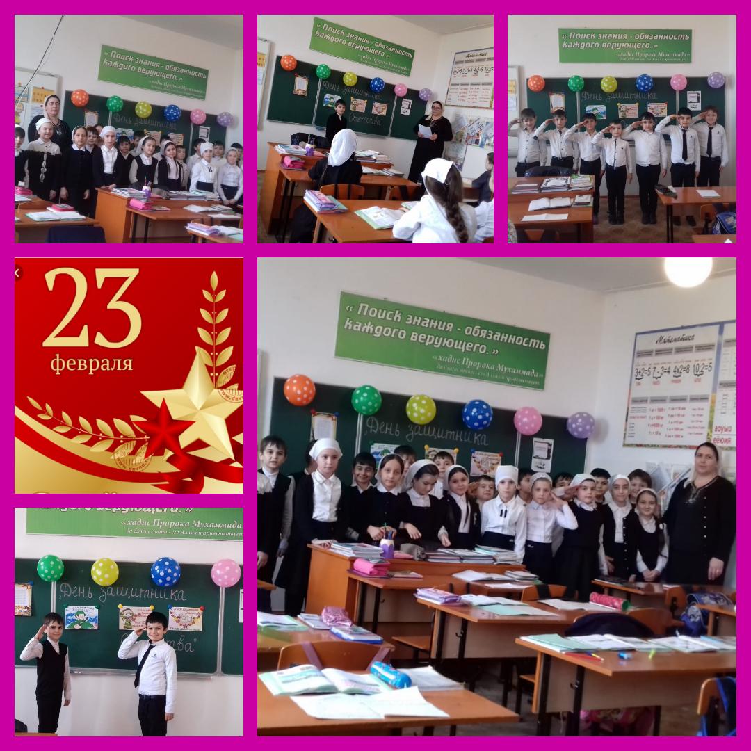 22 февраля кл.рук. Басханова Эльза Лечиевна провела кл.час. на тему: "23 февраля -День защитника Отечества"